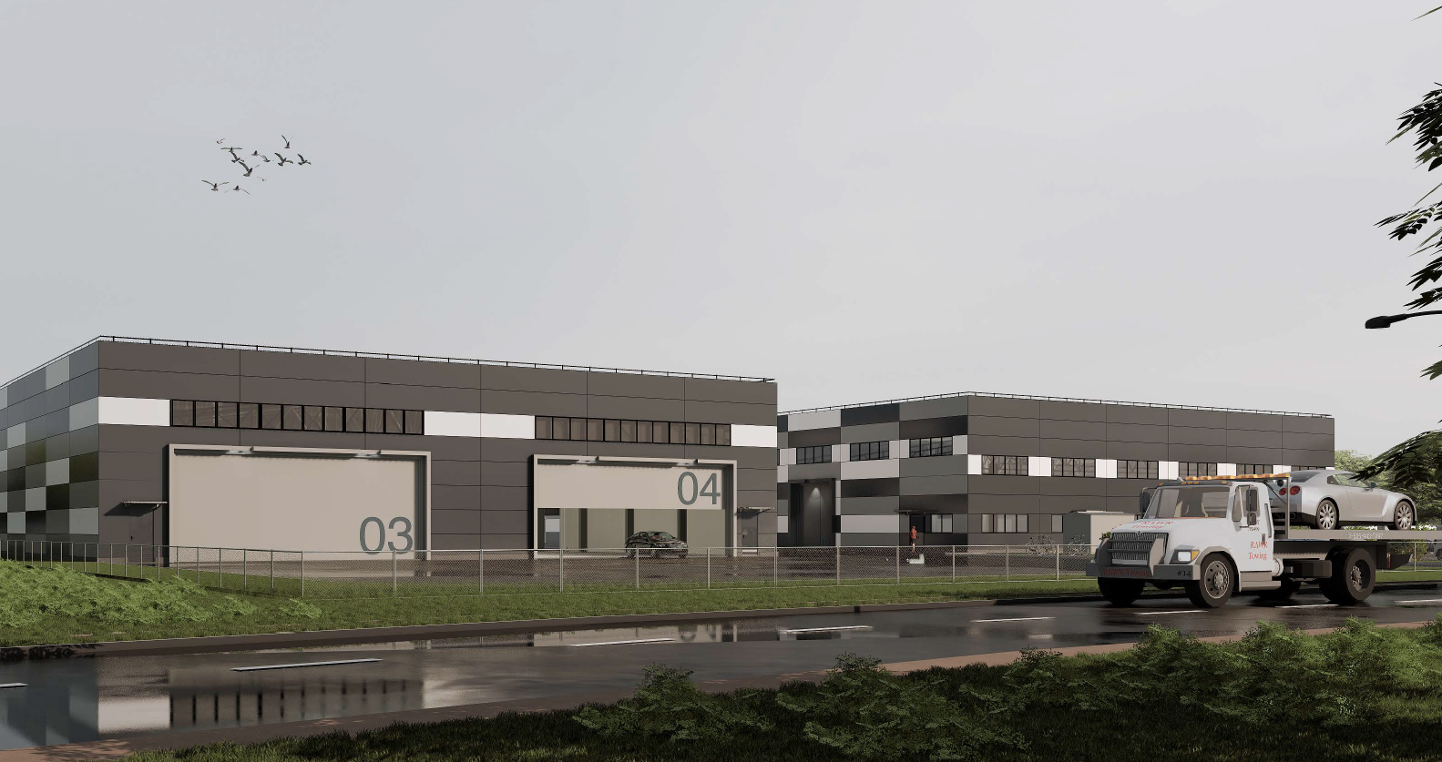 Так и наш производственный комплекс получил согласование своего нового облика с плоской кровлей.