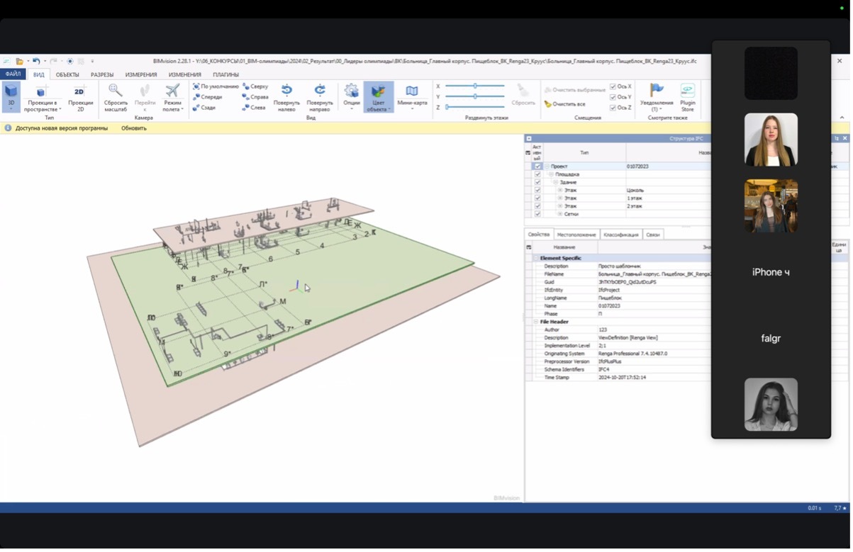 Небольшая справка. В рамках BIM олимпиады, начиная с 1 сентября, студенты ВУЗов присылали свои работы, выполненные в специализированном ПО Комплекты подачи работы содержали IFC-модели объекта, нативный файл того ПО, в котором работают ребята (например, Revit, Renga и archiCad.), выгруженные листы со спецификациями и планами и текстовый файл с аналитикой по коллизиям. Лучшие работы были определены специальным жюри по различным категориям. Новая BIM-олимпиада запланирована на 2025 год!